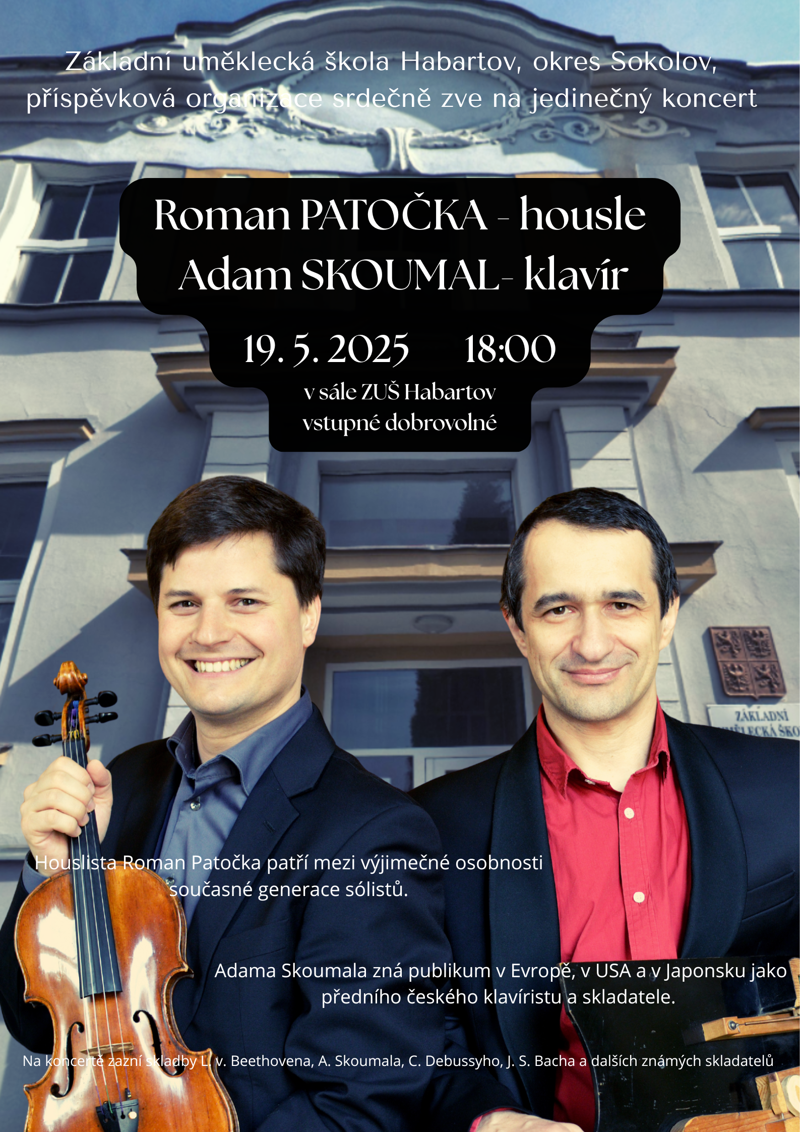 6. 5. 2025 Koncert Romana Patočky a Adama Skoumala (sál ZUŠ 18:00)