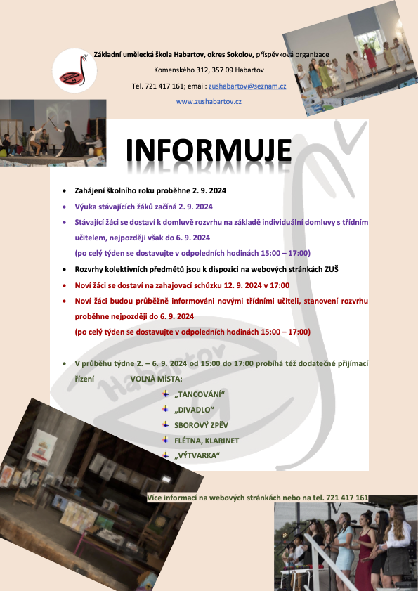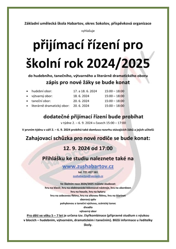 Akce plánované na 1. pololetí 2024/2025 v ZUŠ Habartov